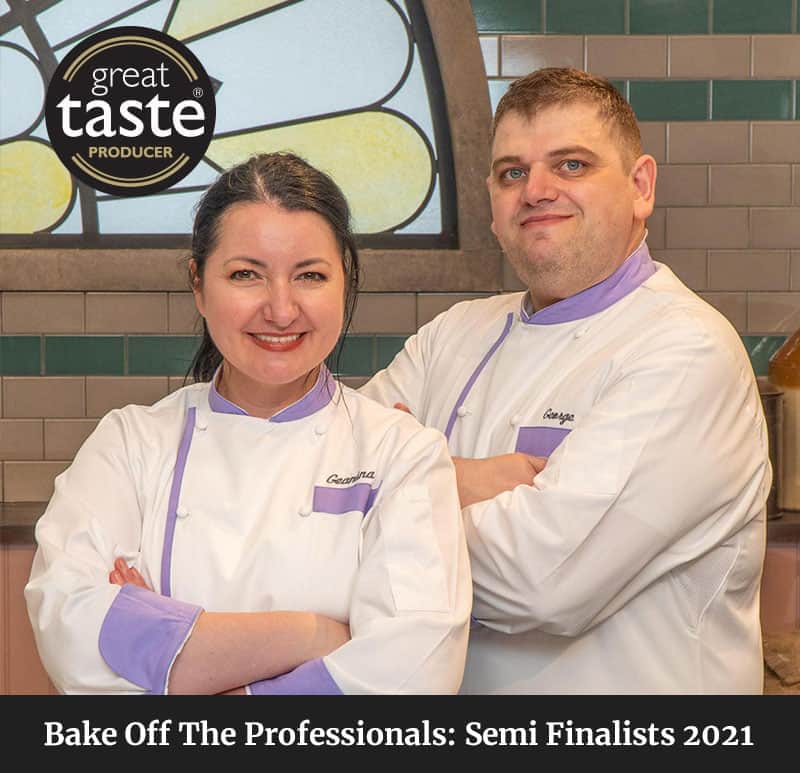 Along with my husband, George, we have dedicated our lives to create quality products, tirelessly working round the clock to establish our patisserie. In 2021 our journey took us onto the TV series, Bake Off: The Professionals. We’re thrilled to have become Semi Finalists on this iconic show.”